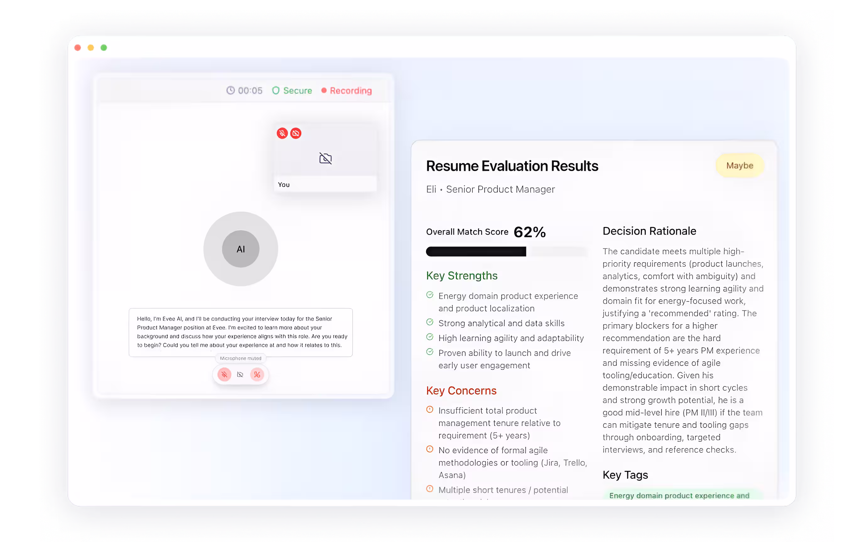 Evee AI combines a global recruiter bounty network with an AI interviewer to maximize hiring performance. Setup takes just minutes — results last for years.